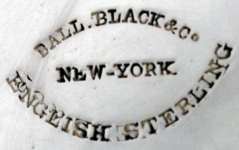 BALL, BLACK & COMPANY - New York, NY succeeded to Ball, Tompkins & Black in 1851. The firm retailed solid silver manufactured by William Gale, Nicholas Bogert, John Moore and others. It was succeeded in 1874 by Black, Starr & Frost.