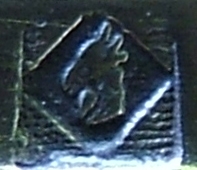 Alfenide mark for silver-plating, a profile of a goat inside a