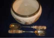 The firm was specialized in the manufacture of silver-mounted glass, stoneware and ceramic items.