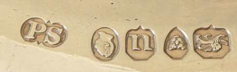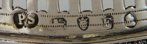 Paul Storr (1771 - 1844) was apprenticed to Andrew Fogelberg, a Swedish silversmith active as "plateworker" at 30 Church Street, Soho, obtaining his freedom in in 1792. In the same year Storr entered in partnership with William Frisbee registering their joint mark "WF over PS" (the address was 5 Cock Lane, Snowhill). The partnership was of short endurance and Storr entered his own mark "PS" on 12th January 1793 (the address was 30 Church Street, Soho). The "PS" mark, with few modifications, was maintained by Storr until his retirement in 1838.
