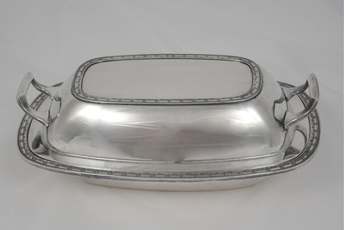 These dishes have a high-domed cover with a central lifting handle and, sometimes, a detachable horizontal