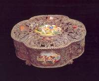 of metal from the back or by casting a piece from a model that was already decorated with true filigree or
