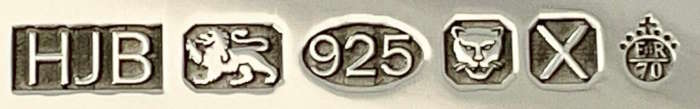 Jubilee Hallmarks commemorating Queen's Diamond Jubilee (applied from 1 July 2011 until 1 October 2012) and the Platinum Jubilee (from 1 Novembre 2021 until 31 December 2022)