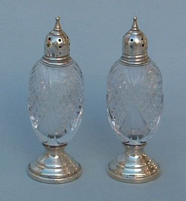 A receptacle for holding table salt made in a great variety of shapes, styles and sizes. Silver or silver