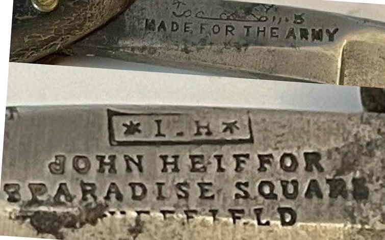 JOHN HEIFFOR Sheffield active at 3 Paradise Square, Sheffield. Origin of the firm with John Heiffor (1780-1849) manufacturer of razors since early 1800s. He was succeeded by his son Thomas Heiffor (1820-1886), who added to razors the manufacture of cutlery. At his death (1886), the successor in the business was his manager and nephew James Hill (son of Martha Heiffor, Thomas's sister). James died in 1911 and his son James Hill continued the activity until 1951. |