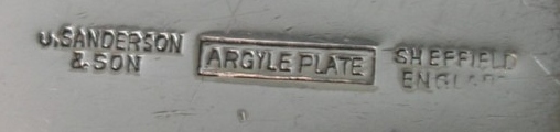 JOHN SANDERSON JOHN SANDERSON & SON JOHN SANDERSON & SON (1929) LTD Sheffield John William Sanderson (1861-1955) was active at 18 Arundel St (1887-1889) and 34/36 Holly St. Sheffield (1895- c. 1905), for a while in partnership with John Norton Roe. In c. 1905 Sanderson moved to Argyle Works, Canning Street and c. 1914 became John Sanderson & Son. John Sanderson & Son (1929) Ltd was created in 1929 and was active at Trafalgar St, Sheffield (1929-1935). The firm used the trade mark ARGYLE PLATE and, possibly, FARQUHARSON |