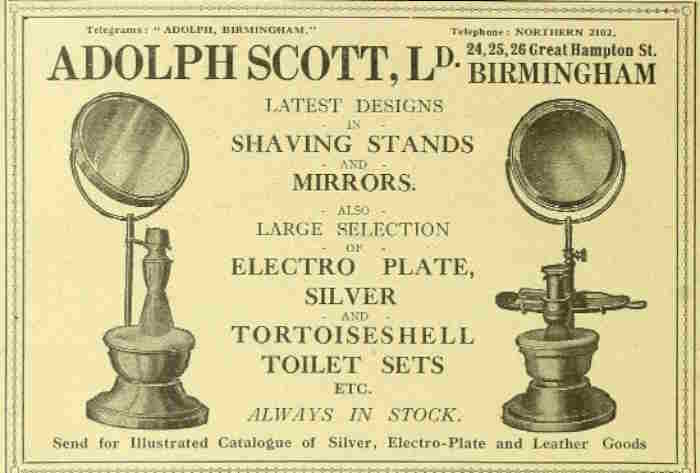ADOLPH SCOTT ADOLPH SCOTT LTD Birmingham Active in the 1920s at 23/26 Great Hampton Street, Birmingham. The firm used the trade mark AMNORA |