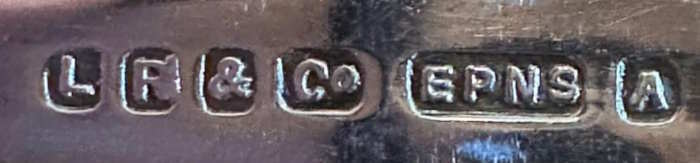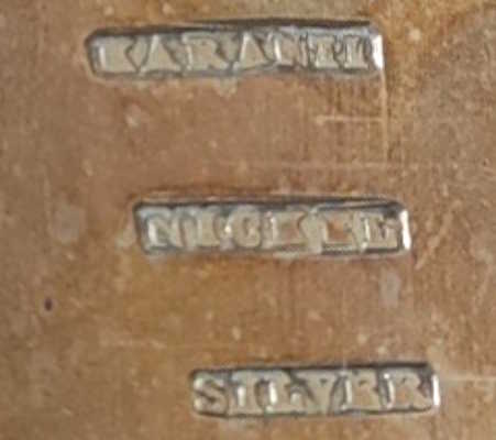 Electroplated materials are often stamped EPNS for electroplated nickel on silver, or EPBM for electroplated Britannia metal.