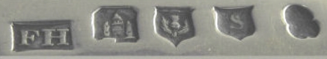 FH gothic into a heart The Portland Co Ltd -Francis Higgins III- , The firm was founded by Harry Emanuel, retailer goldsmith of Hanover Square, to capitalize a patent for the machine-production of spoons and forks. Francis Higgins acted as manager from 1859 to 1868 London 1861 hallmark |