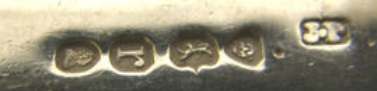 Maker's mark, identifying the silversmith presenting the piece to the assay office (usually the initials of Christian name and surname of the silversmith)
