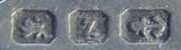 Maker's mark, identifying the silversmith presenting the piece to the assay office (usually the initials of Christian name and surname of the silversmith)