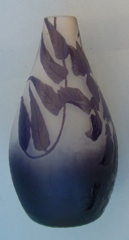 this cameo glass vase was made in France, circa 1930, by the firm D'Argental. D'Argental is the signature adopted by Cristalleries Saint Louis, which began in 1924 a new production of cameo glass. The factory was settled at Bitche in Moselle (France). The name D'Argental derives from the name of the village of origin of Cristalleries Saint Louis, which was Munzthal. "Munze" in German means money, so for analogy "argent" (silver) in French.The cameo glass is a multi-layered glass on which a picture has been carved through the layers, so that it stands out in relief from the surface and the colored layers form the contrast of the picture. The surrounding glass is cut away using hydrofluoric acid, which eats away glass. Emile Gallé was a forerunner in workmanship of cameo glass, but at the end of 19th century/beginning 20th century many factories in France devoted to this working. The vase measures 5 in. (cm. 13) and was bought in Amsterdam by a Dutch dealer. | |||||||||||||||||||||||||||||||||||||||||