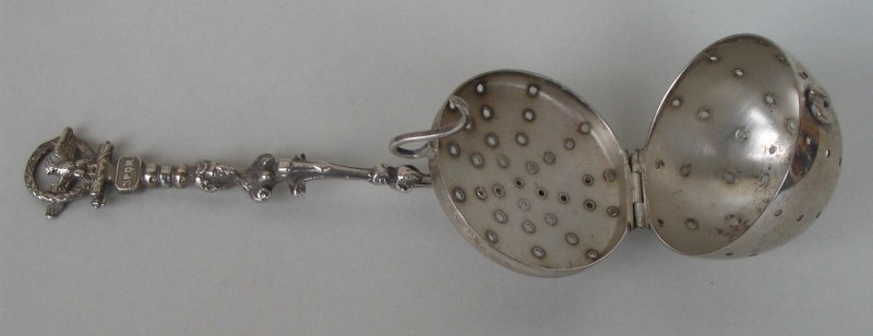 The tea strainer is 6 in. long (cm. 15) and was bought from an Italian dealer in an Antique market.
