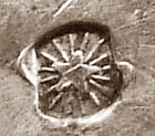 marchio speciale per lavori in rimanenza entro un anno dalla consegna dei nuovi punzoni introdotti con la legga 305 del 5.2.1934. Vengono previste due versioni del punzone, del tutto simili ma di diversa dimensione a seconda che si tratti di grossi lavori o di lavori minuti (courtesy Andrea Menarini) |