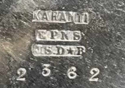 Electroplated materials are often stamped EPNS for electroplated nickel on silver, or EPBM for electroplated Britannia metal.